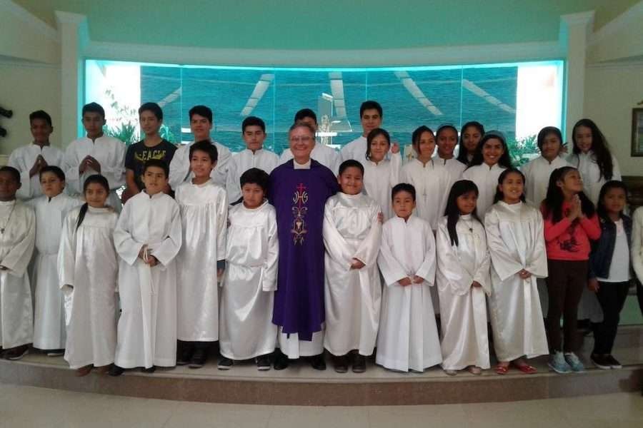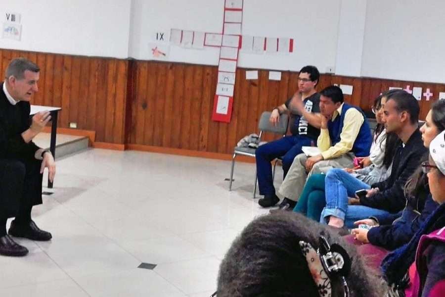 Superior General de los misioneros Identes con niños, jóvenes y adultos de Bogotá
