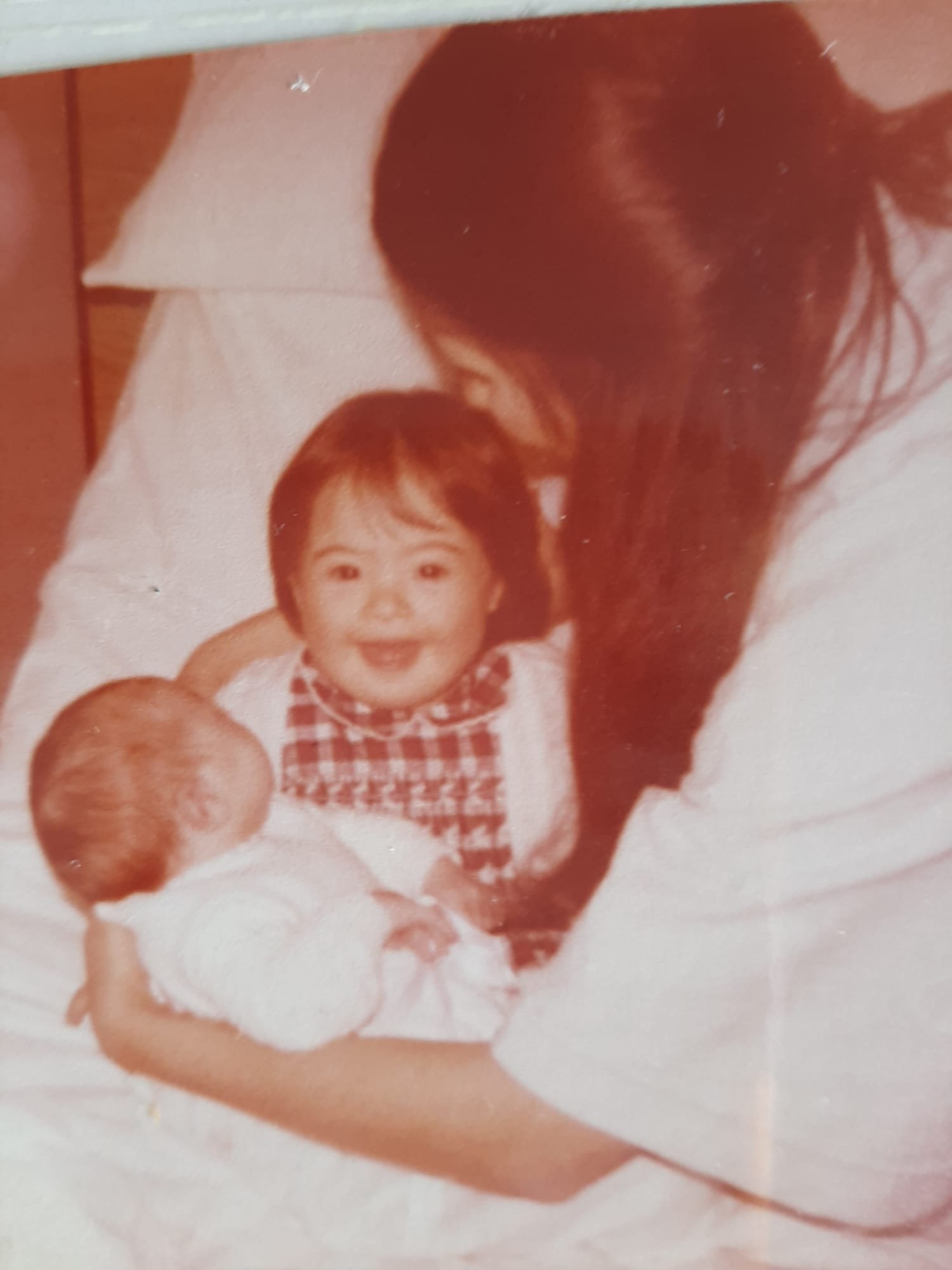«Cuando nació nuestra primera hija, María, y la cogí en brazos, noté algo, pero lo único que veía era a mi hija preciosa, y estaba feliz de tenerla conmigo. Llegaron el ginecólogo y mi marido, Manolo, y los vi extraños, muy afectados. El ginecólogo, casi llorando, me dijo que ella tenía síndrome de Down. Yo le respondí: «¿No ves que es mi hija? ¿No ves qué bonita es?» Tuve que consolarles a los dos, pero yo estaba feliz.»