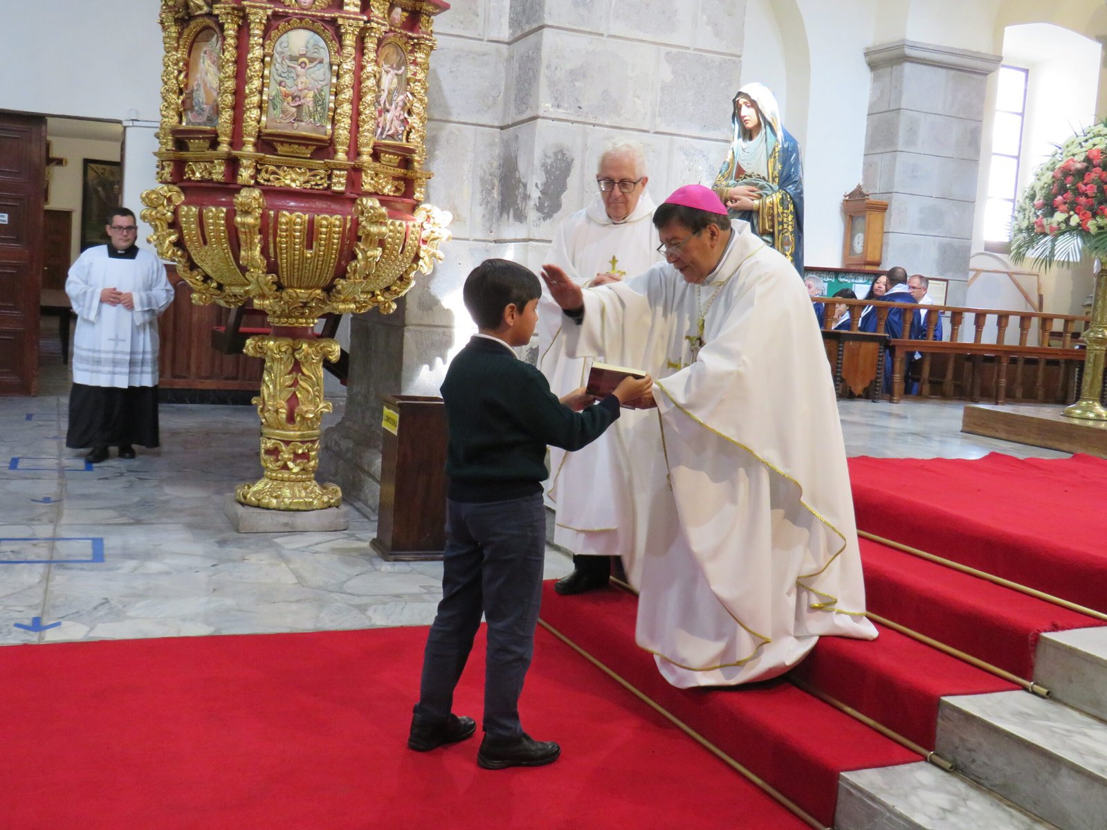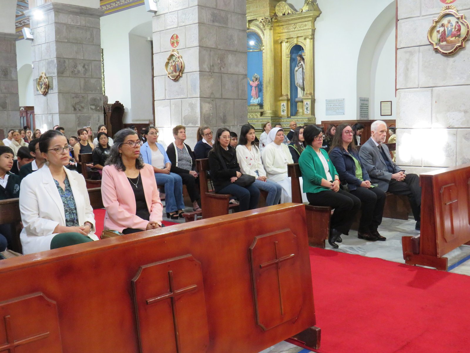 En la Catedral de Ibarra, una comunidad diversa —misioneros, familias, estudiantes, docentes y jóvenes— se reunió para celebrar la Eucaristía presidida por Mons. René Coba, Obispo de Ibarra. En su homilía, el Obispo resumió el Evangelio en tres verbos esenciales: enseñar, anunciar y sanar.